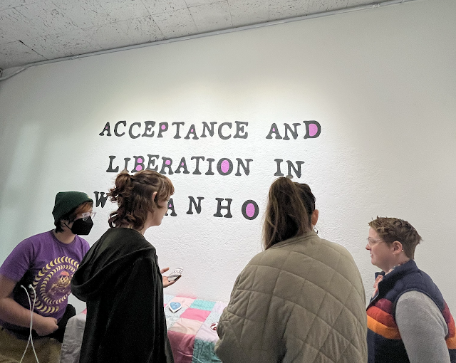Moving through the exhibit, I was drawn to his collage work, MY KID COULD DO THAT!, 2020, Magazine cut-outs and book cover on panel. The cutouts came from the magazine Artforum and the book All I Really Need to Know I Learned in Kindergarten, it is a commentary on how artists are often given the comment "My kid could do that" when discussing their work. The description next to this piece in the museum, talks about how Ruben uses this piece as a sort of anti-art. He didn't want it to be sophisticated or have a deeper meaning. Personally, though when looking at this work, I find it to be of skilled technique and knowledge of art. With the overlapping of material, different textures and values absorb the book cover he is highlighting. There is a great balance of chaos in this piece that works perfectly. It keeps your eyes moving through it and gives you variation on what to look at. Ruben also uses Pop Art techniques in this work that give it substance. This was a personal favorite from the exhibit.